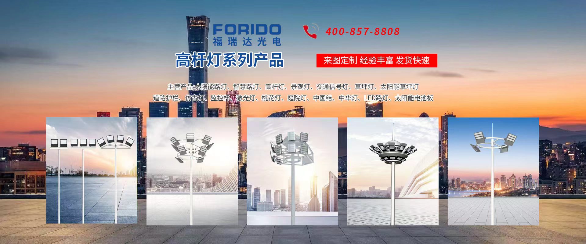 揚州福瑞達光電科技有限公司位于淮左名都歷史文化名城、中國路燈制造基地揚州市北郊菱塘工業園,公司占地面積76000平方米,注冊資金10518萬元,擁有高級技術嫻熟的員工280多人,擁有大型折彎機、激光切割、數控注塑機、壓鑄機、自動埋弧焊、氣焊、彩色粉末靜電噴塑等大型自動化設備,我公司是一家集設計、研發、生產、銷售、施工安裝服務為一體的戶外交通照明產品制造商,主要生產智慧路燈、太陽能路燈、LED路燈、高桿燈、景觀燈、交通信號燈、交通標志牌、通信鐵塔、路跨鋼結構、公交站臺、太陽能光伏組件、景點亮化、樓宇亮化工程的設計施工等。公司秉承開拓創新、銳意進取、精誠服務的企業精神,堅持以“誠信為本、技術為先、服務是金”的合作理念,我們憑借先進的制造工藝、優質的產品質量、合理的市場價格和完善的售后服務贏得了廣闊的市場和客戶的信賴。  我公司已通過ISO9001質量體系認證、ISO14001環境管理體認證,CQC產品認證,中國節能產品認證,通過“CCC”強制性產品認證,具有市政總承包,照明,交安,設計等資質···